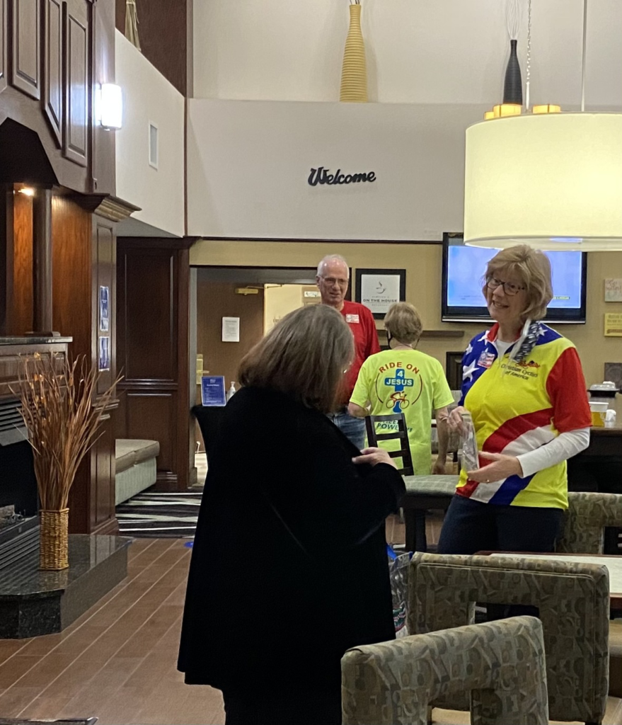 | God blessed us with lots of sunshine and great weather, safety and protection, super fun fellowship with our team and amazing “Divine Appointments”. Our team collectively rode approximately 2,700 miles, had only 1 flat tire, talked to over a hundred of people about the Gospel, and had the wonderful privilege of praying with 4 people who came to know Jesus as their personal Lord and Savior. |